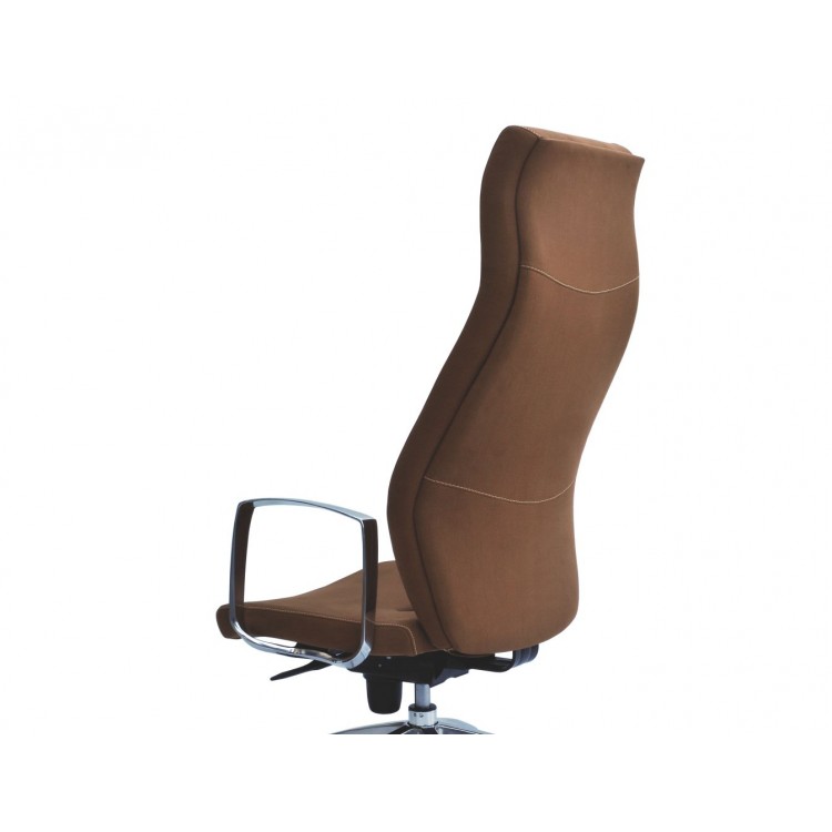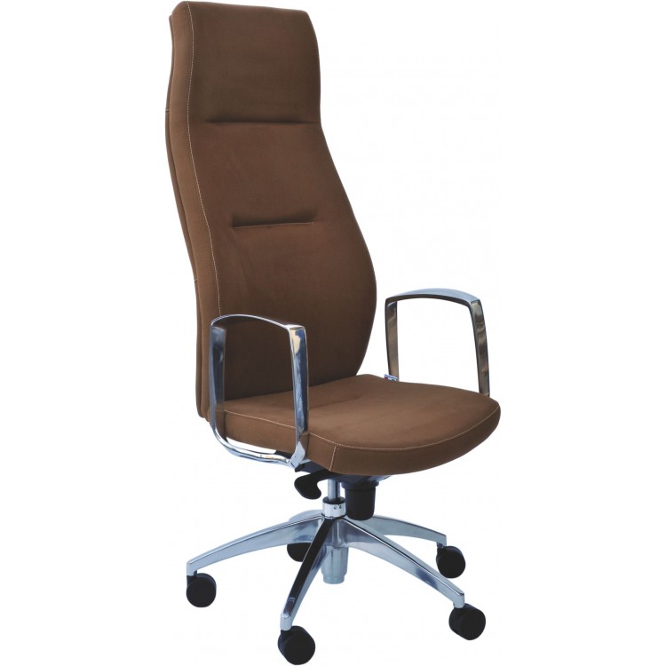 Poltrona presidenziale con schienale altissimo e direzionale con schienale alto ,sedile e schienale in multistrato di pioppo e faggio mm 12, imbottitura in poliuretano espanso di altissima densità,base e braccioli in alluminio pressofuso spazzolato, meccanismo syncronizzato multiblock autoregolante,sistema antishock per evitare il ritorno violento dello schienale,regolazione dell'altezza per mezzo di pompa a gas in acciaio cromato,ruote gommate con doppio battistrada.
