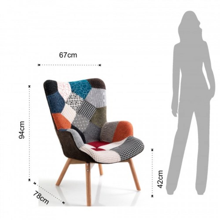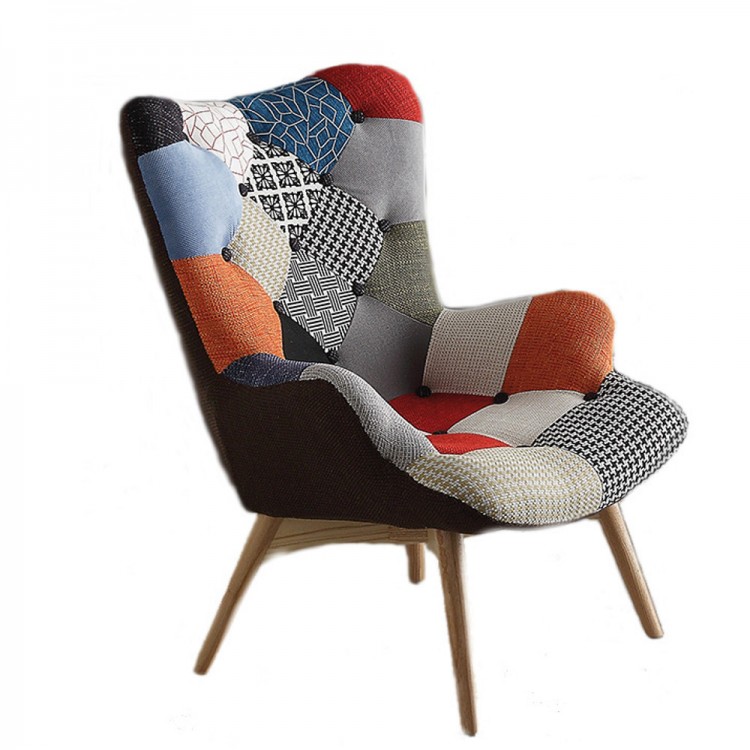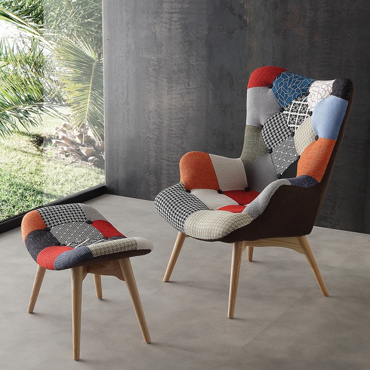 • seduta e schienale rivestiti in tessuto con tecnica patchwork